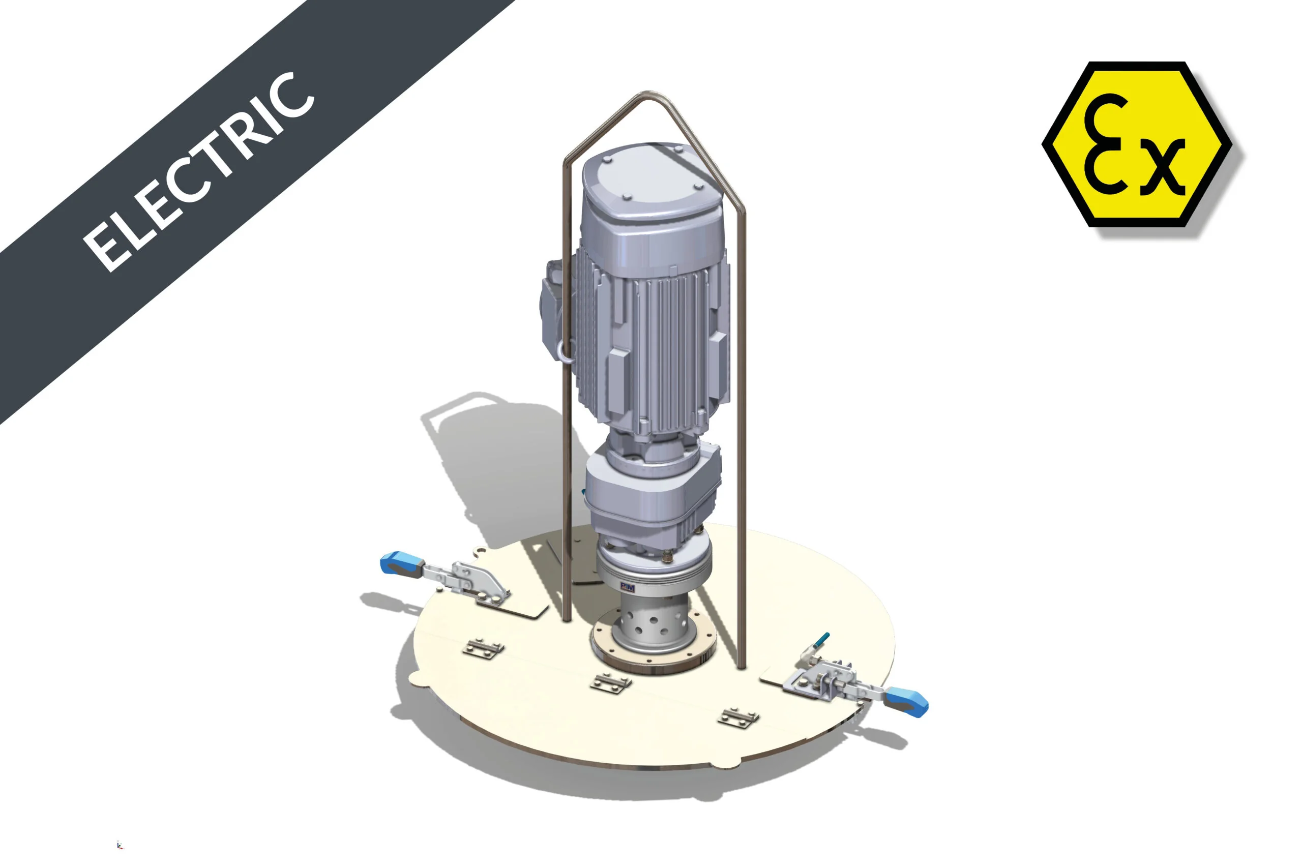 Dieses ATEX-zertifizierte Rührwerk für ATEX Zone 0/1 ist speziell für den Einsatz in explosionsgefährdeten Bereichen und für die Verarbeitung großer Produktmengen in 200-Liter-Fässern konzipiert. Der energieeffiziente, elektrische Antrieb sorgt in Kombination mit Rührwelle und -organ für eine kraftvolle, aber zugleich schonende Durchmischung von Medien jeder Viskositätsklasse.