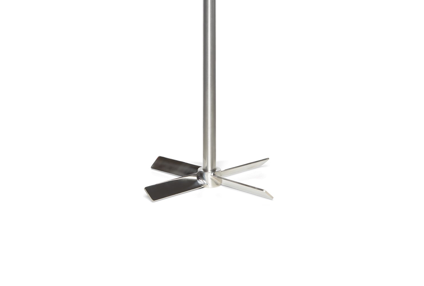 Der Schrägblattmischer überzeugt durch seine axiale Fördercharakteristik mit leicht radialer Komponente und erzeugt dabei eine turbulente Strömung, die eine besonders effektive Durchmischung ermöglicht. Durch seine robuste Bauweise eignet er sich ideal für höher viskose Substanzen.