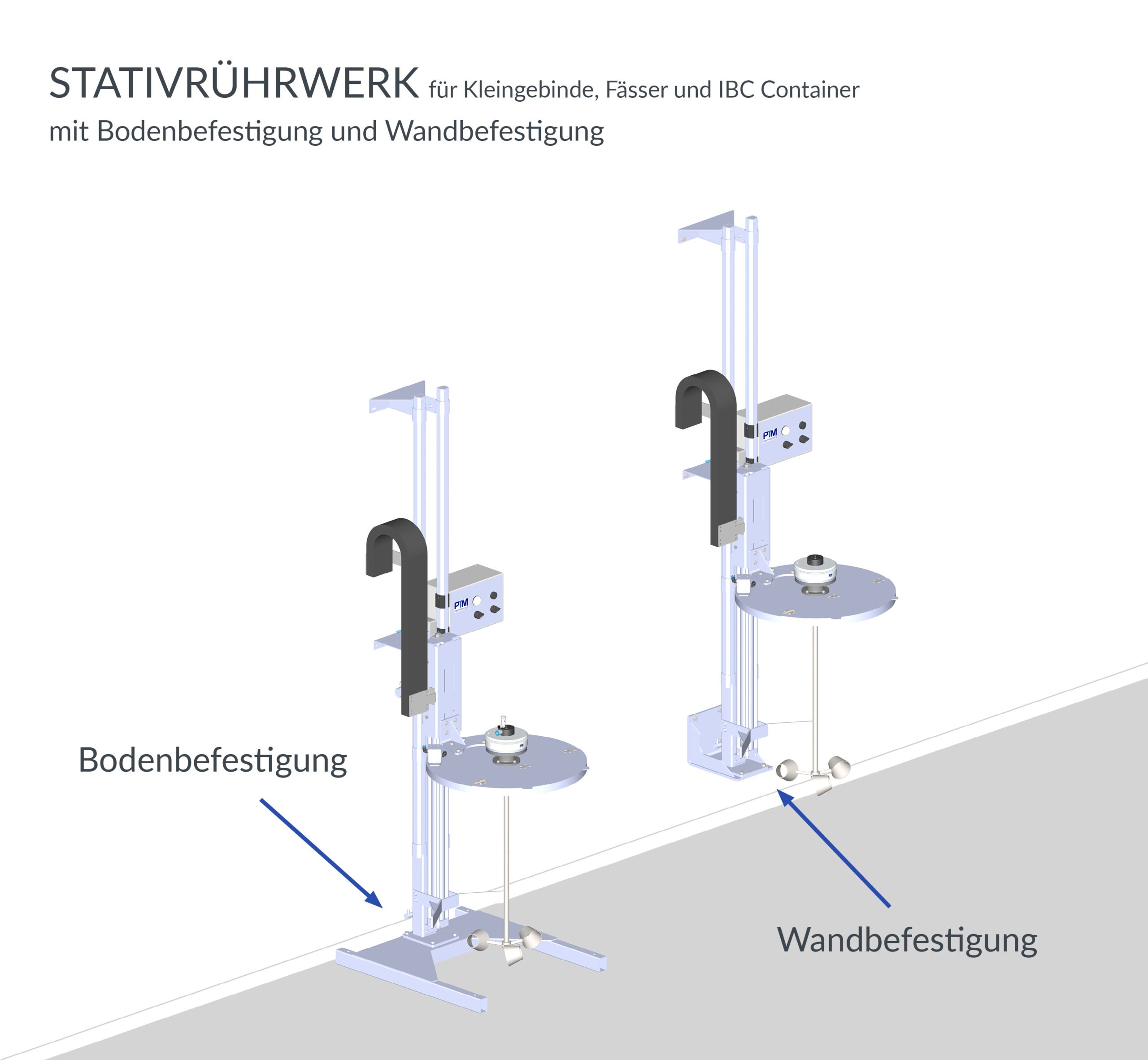 Das Stativrührwerk ist sowohl mit Wand- wie auch Bodenbefestigung erhältlich.