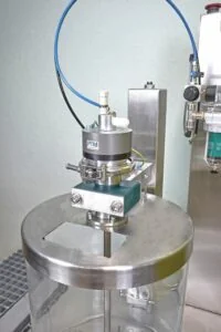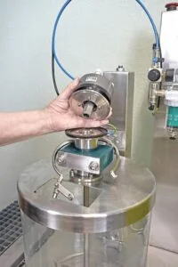 Im Bereich der Pharmazie und dem Labor finden vor allem sogenannte DN Flansche Anwendung. Die Flanschlösung besteht dann letztendlich aus zwei Vorschweiß-Flanschen, die mittels einer Klemme zusammengehalten werden. Durch Öffnen der Klemme können die Rührwerke bequem und schnell vom Behälter und der Rührwelle abgekoppelt werden.